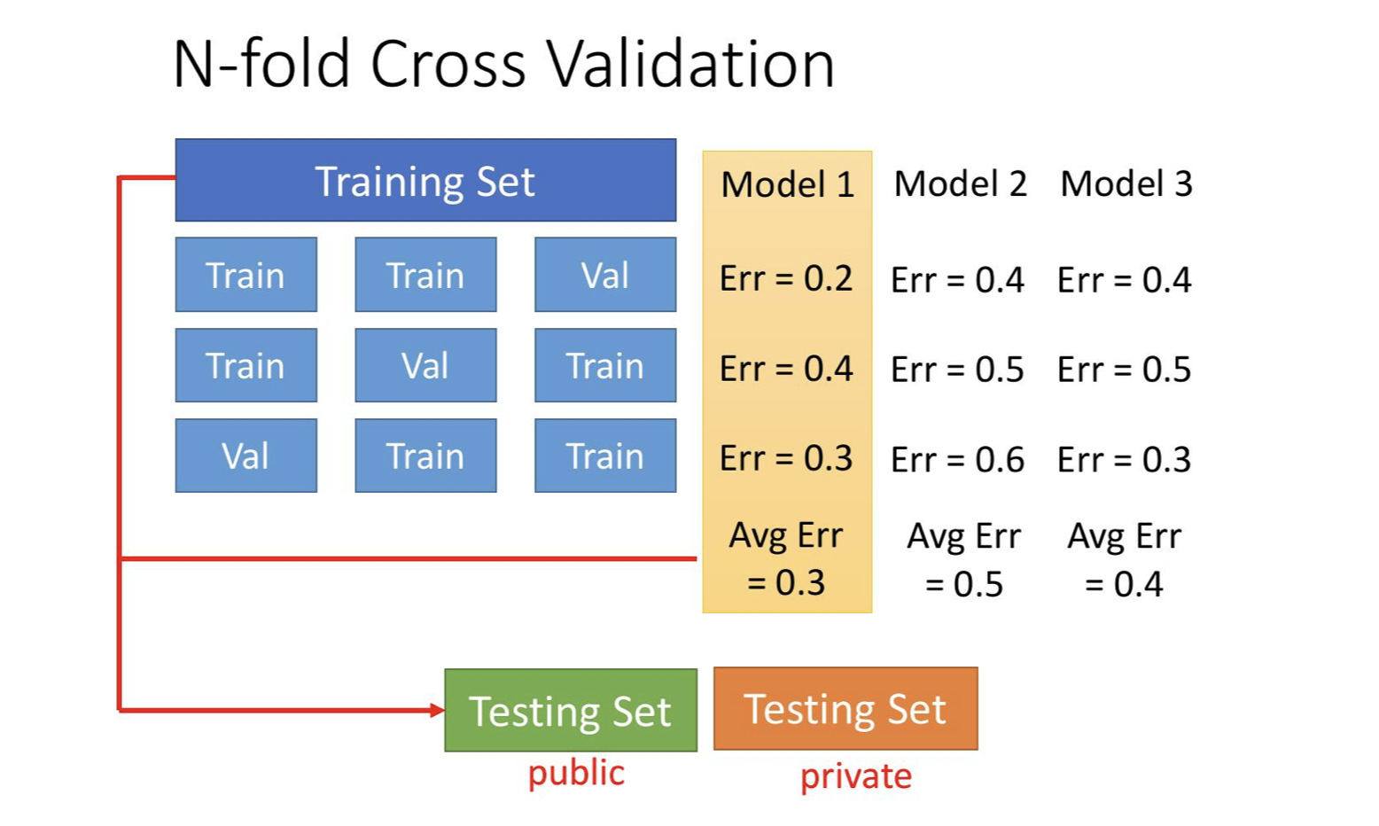 - Error on a test dataset, which can only be used once.