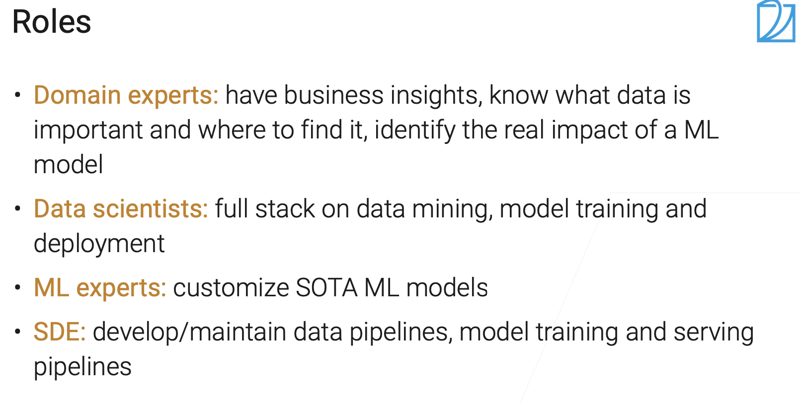 不同的人在机器学习项目中扮演的角色。