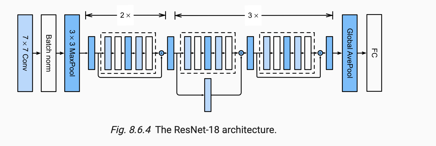 - 经过这样的处理,残差块的输出就可以表示为 \(\mathbf{y} = \mathcal{F}(\mathbf{x}, \{W_i\}) + W_s\mathbf{x}\),从而解决了维度不匹配时无法直接相加的问题。