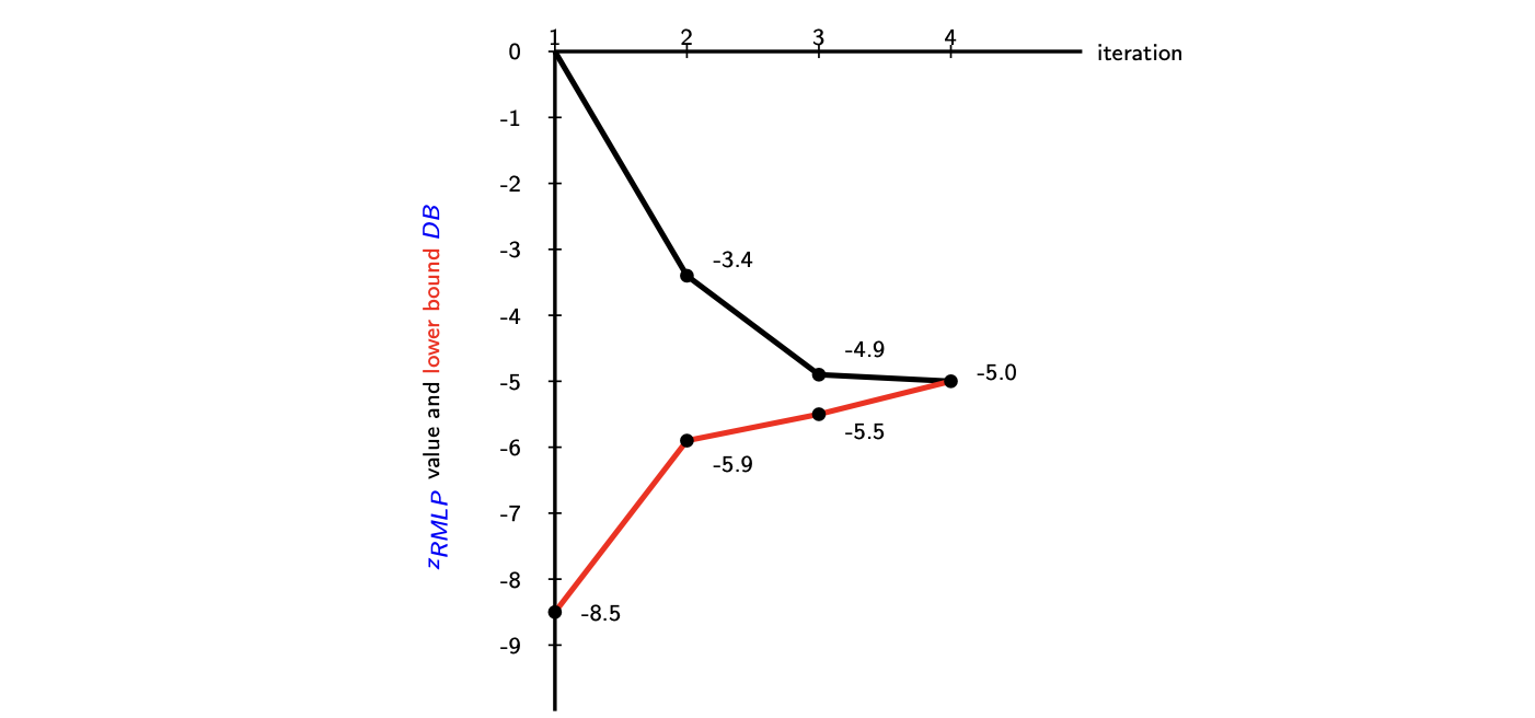 (LD) \quad z_{LD} = \max_{\pi \geq 0} \{L(\pi)\} = \max_{\pi \geq 0} \left\{ \min_{x \in Z} \{ cx + \pi(d - Dx) \} \right\}