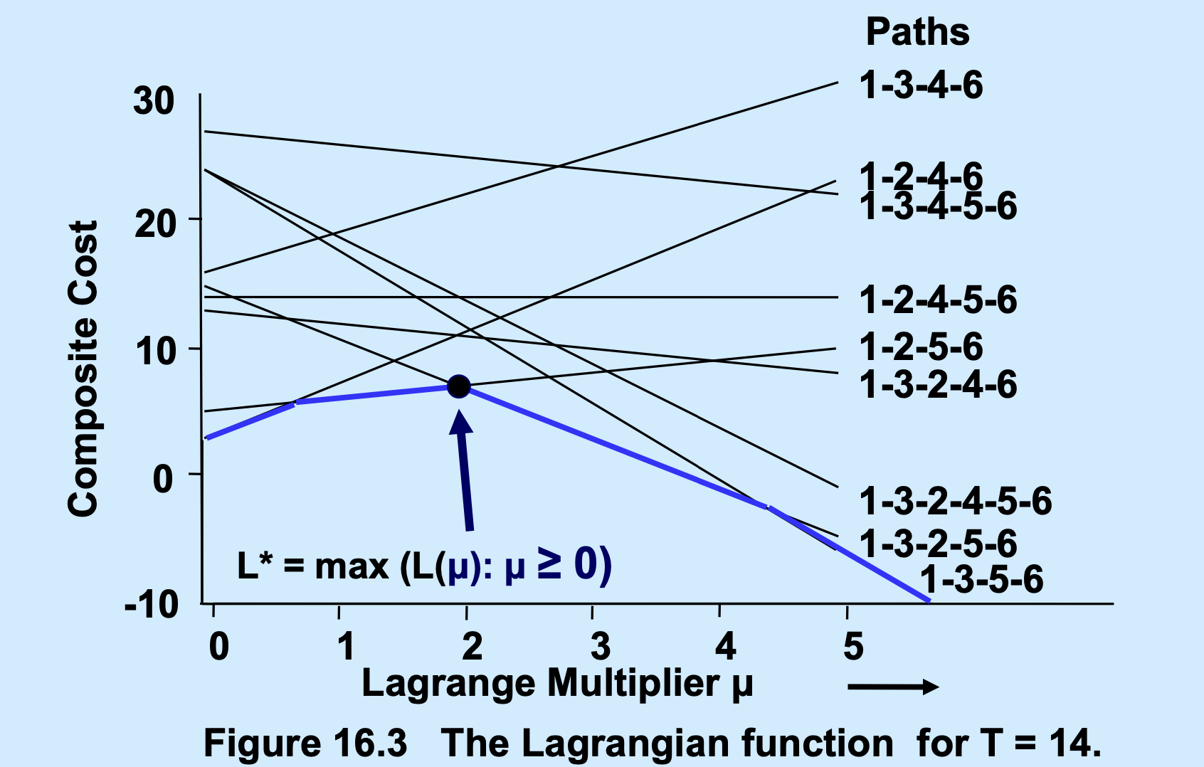 求解拉格朗日乘子问题就像是在调音。每一条可行路径都是一根弦,它们的交织形成了复杂的包络面(下界函数)。我们通过迭代(约束生成),每次只关注最关键的几根弦,通过反复旋转调音旋钮(调整乘子 \(\mu\)),最终找到让声音最和谐(下界最高)的那个平衡点。