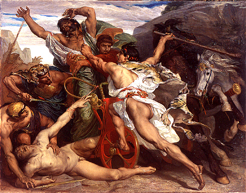 至此,所有线索串联在一起:当年他离开科林斯远赴底比斯,路中在三岔路口与一队人马发生冲突。对方首领(即亲生父亲拉伊俄斯)的车夫对他粗暴无礼,引发争执,俄狄浦斯在盛怒之下杀死了拉伊俄斯及其大部分随从,仅一人侥幸逃脱。此时虽然俄狄浦斯对死者的身份毫不知情,但是实际上,神谕已经显现了。