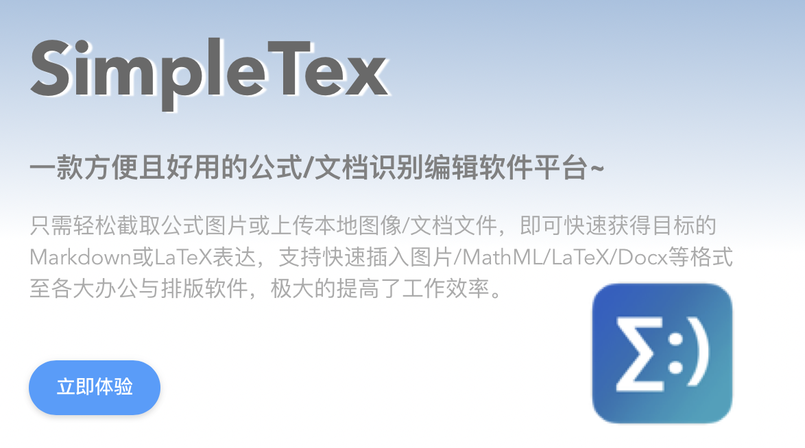 免💰且超好用的 \(LaTeX\) 公式识别工具推荐: SimpleTex!⚓︎