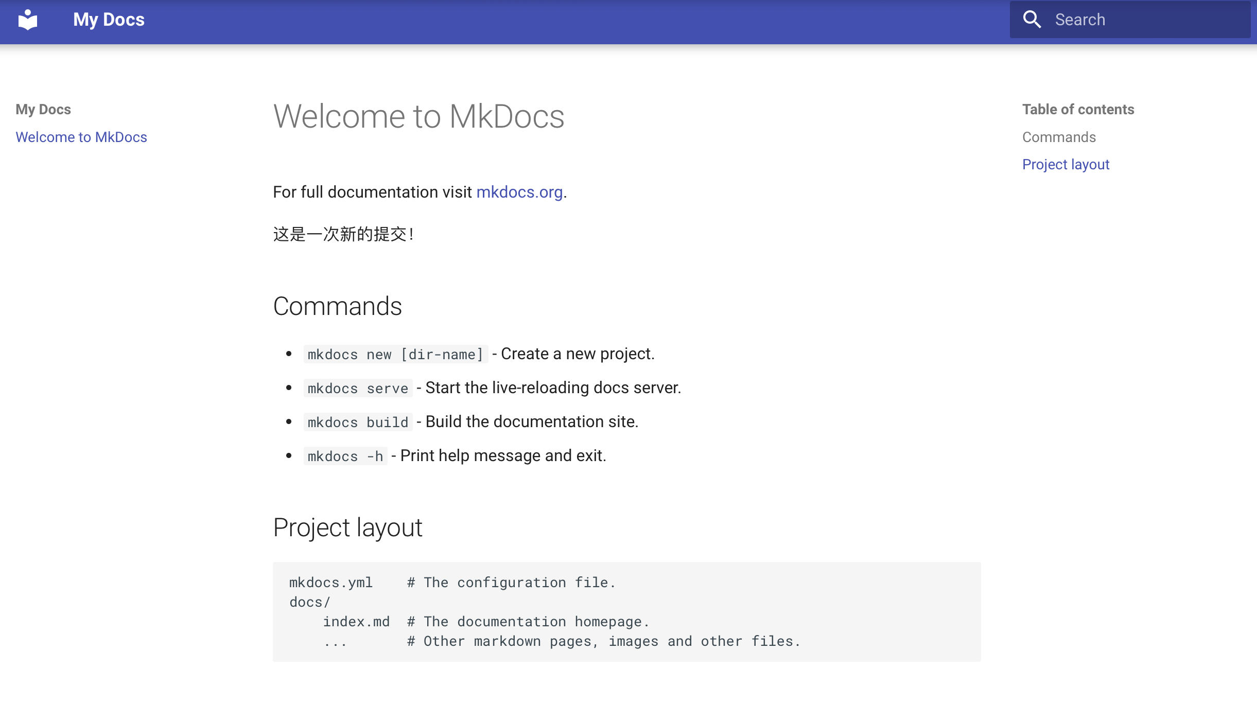 好的!现在你已经学会了如何组织你的页面板块结构并添加更多文档,从现在开始你就可以更新文档并维护自己的网站了!