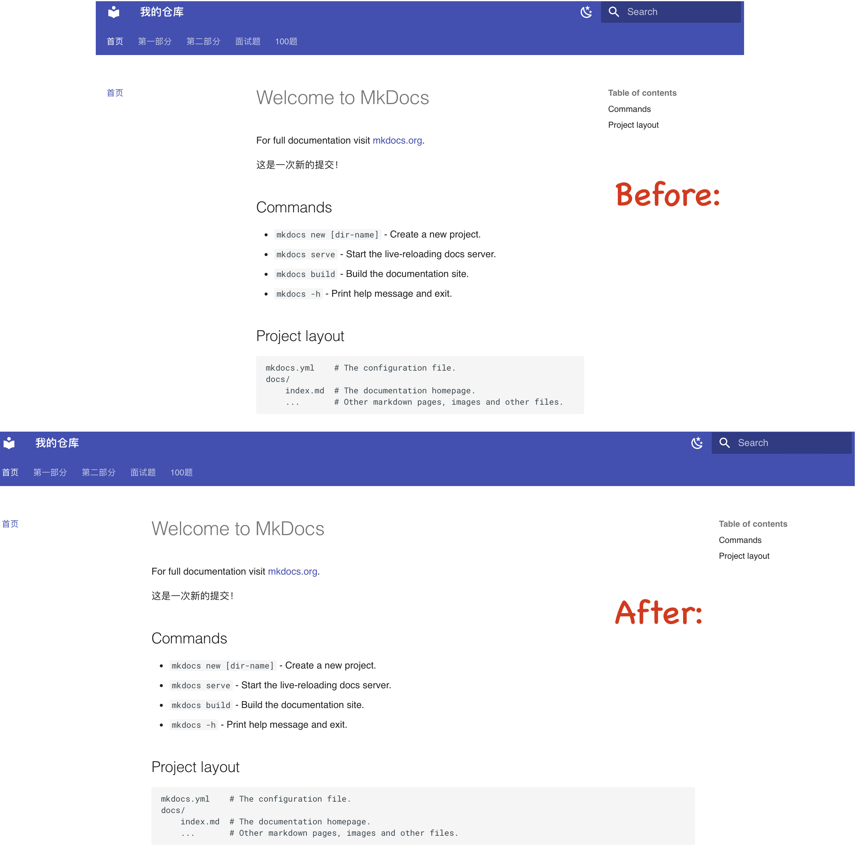 本章会简单介绍一下Mkdocs Materials主题如何适配常用的Markdown语法。在阅读后续内容前,需要确保已经实现了第一篇:网站搭建 中的内容,如果已经实现了第二篇笔记,效果会更好。